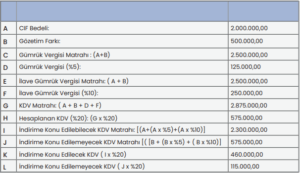 “İthalatta verginin matrahı aşağıda gösterilen unsurların toplamıdır: