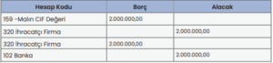 İthalatçı ABC Firmasının ihracatçı firmadan mal alış ve ödemesine ait kaydı
